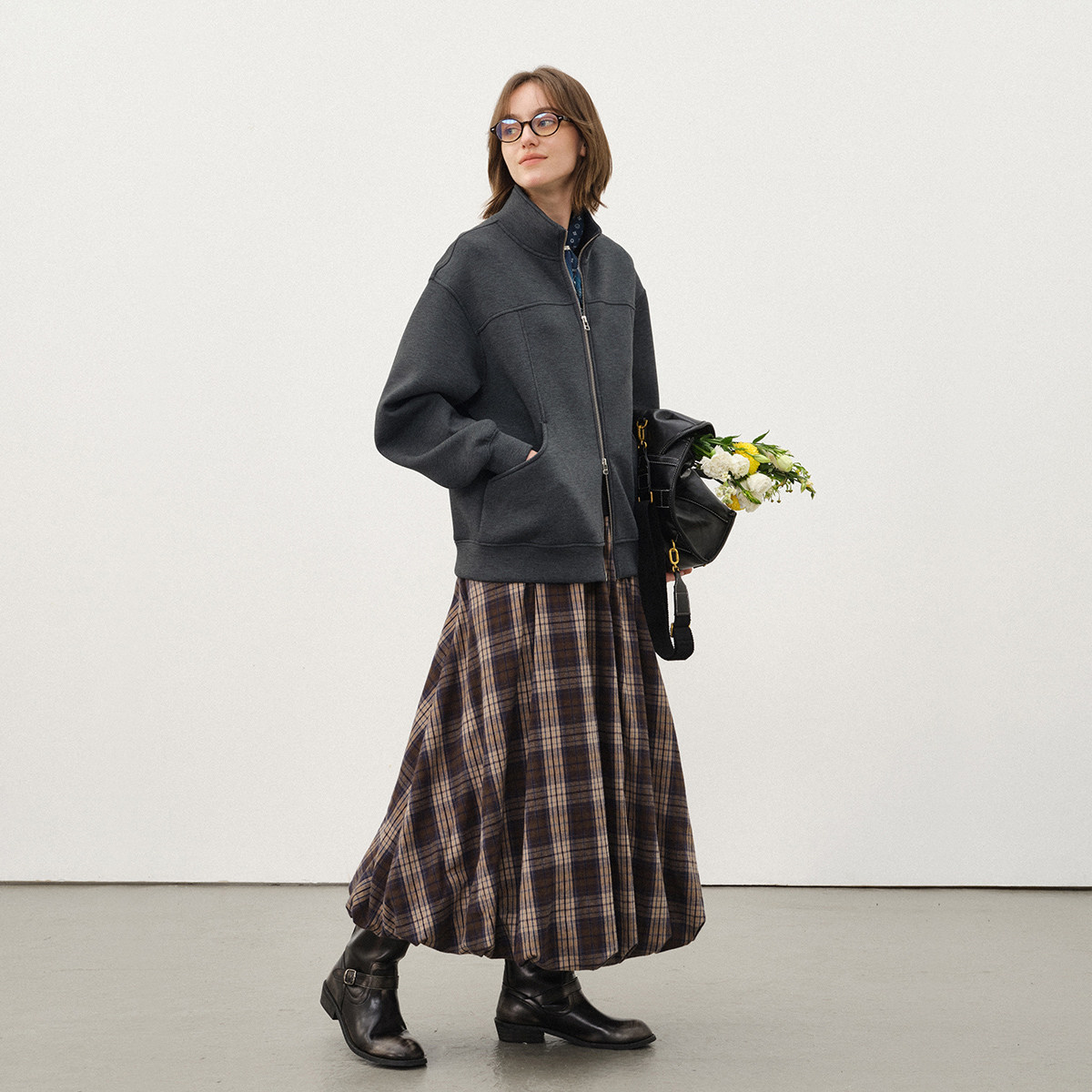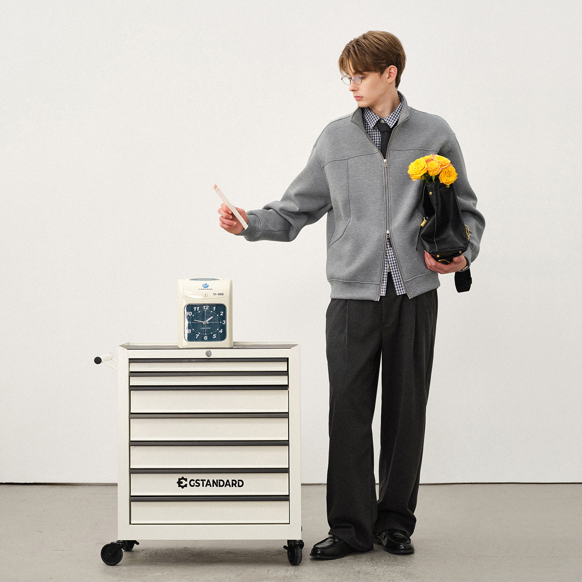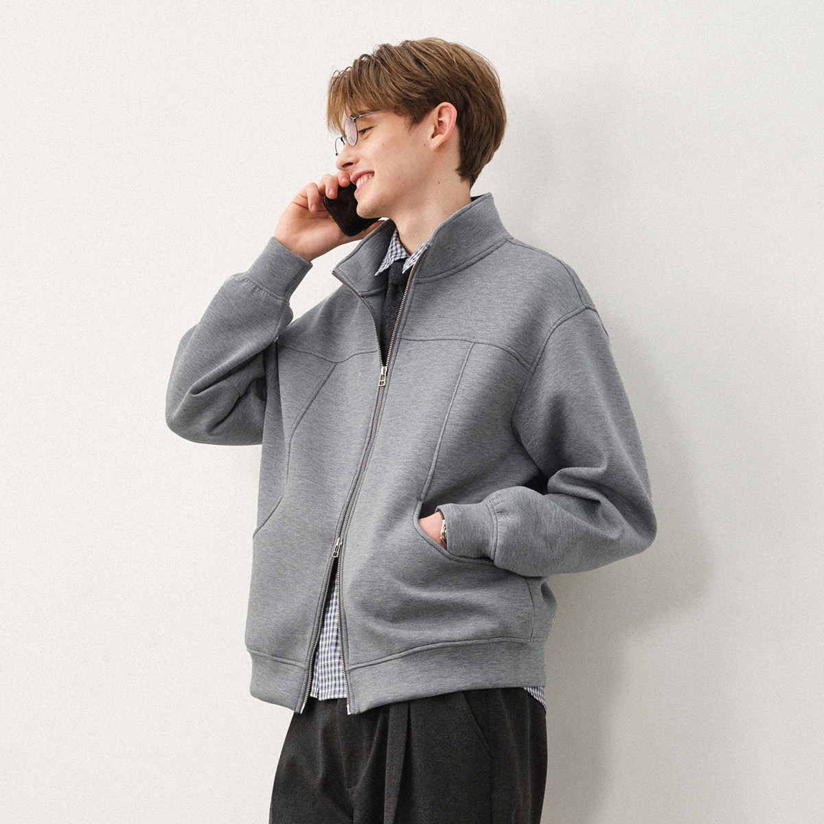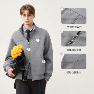 714street秋冬美式 宽松立领夹克外套 空气层短廓拼接卫衣男2025款