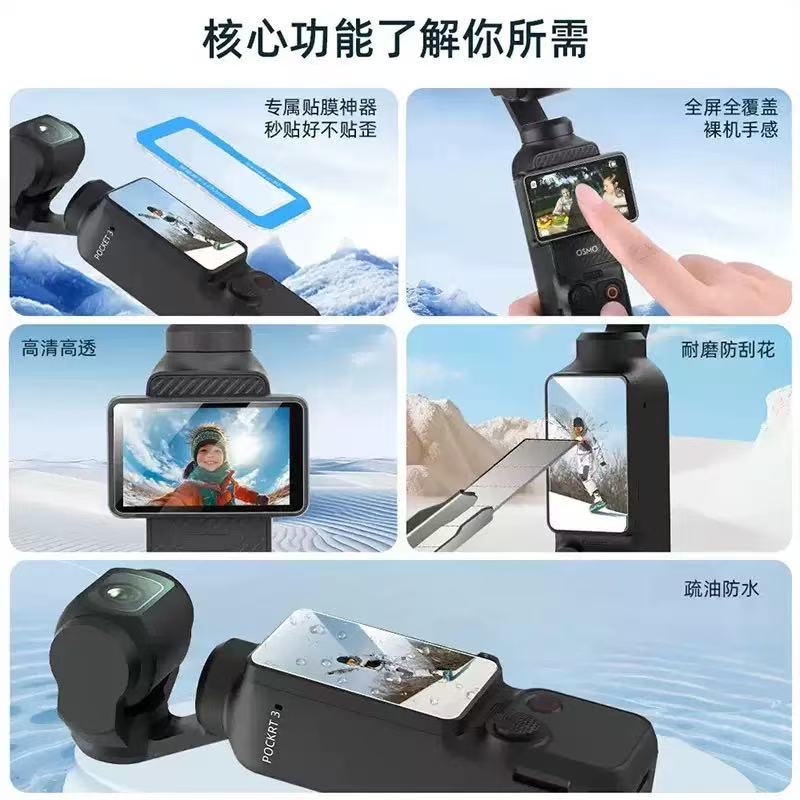 适用大疆Osmo Pocket3秒贴钢化膜屏幕贴膜神器高清膜相机全屏膜贴