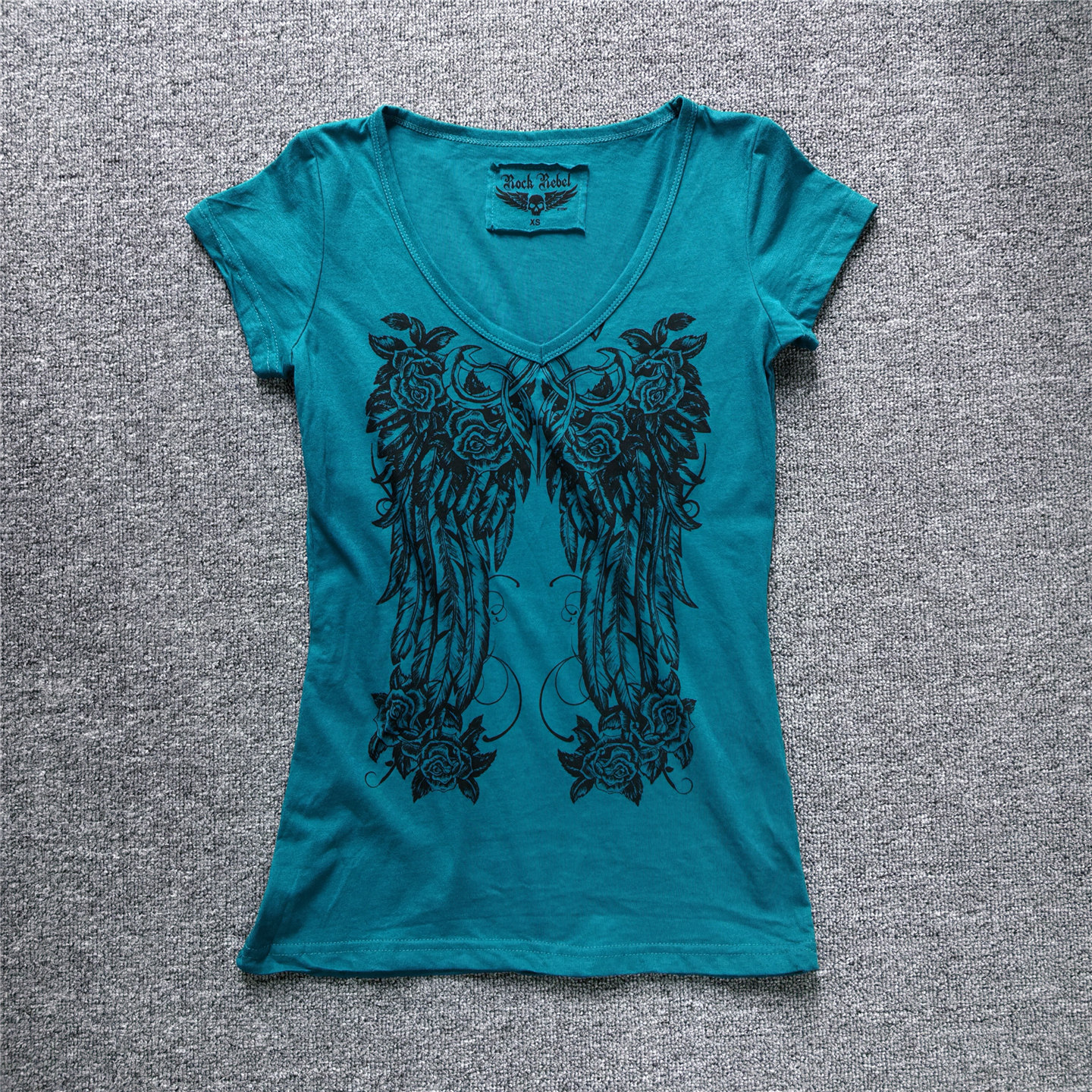 印花短袖 外贸原单复古V领y2k千禧辣妹短袖 修身 夏季 上衣女 T恤