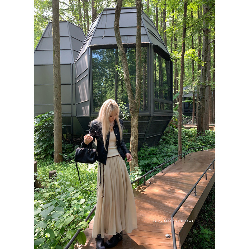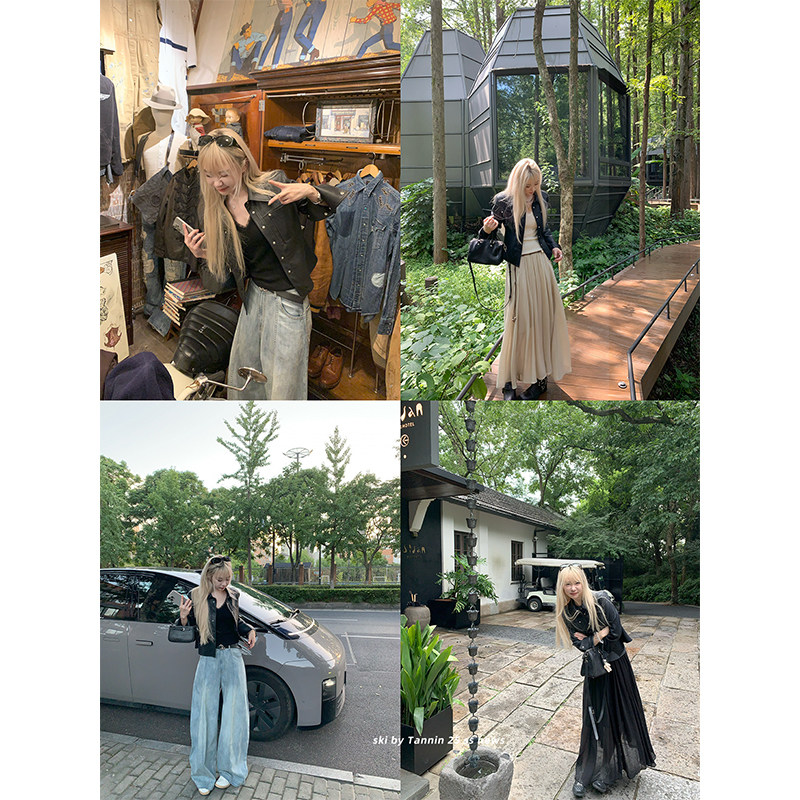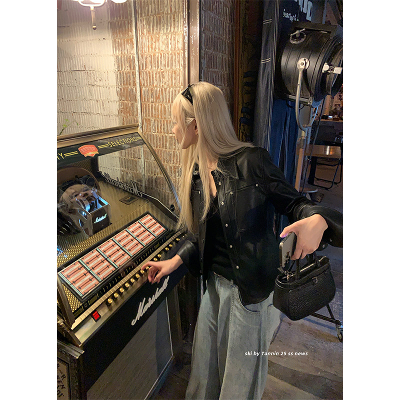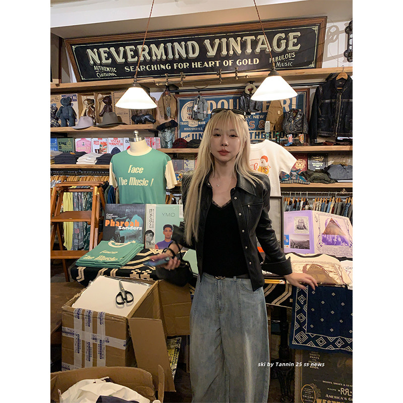 收腰修身 Tannin赤兔海莉style复古短款 显瘦机车pu皮衣夹克 ski