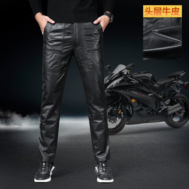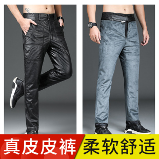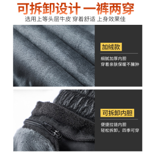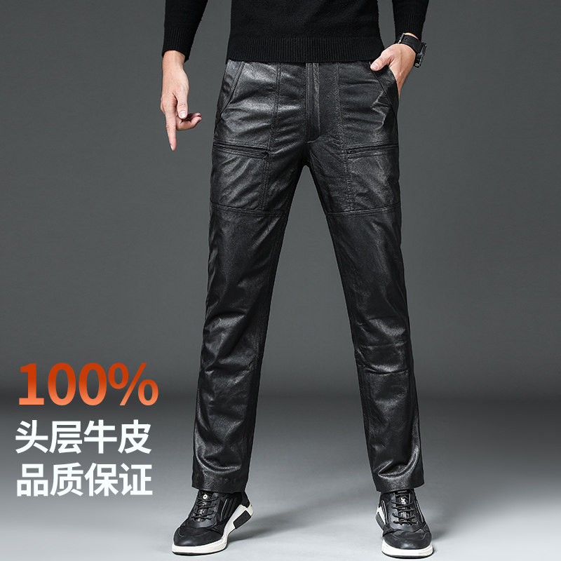 男士 男海宁头层牛皮拆卸加绒加厚机车宽松爸爸休闲摩托车 真皮皮裤