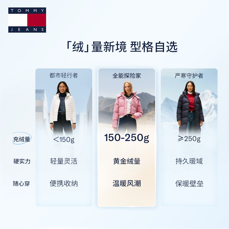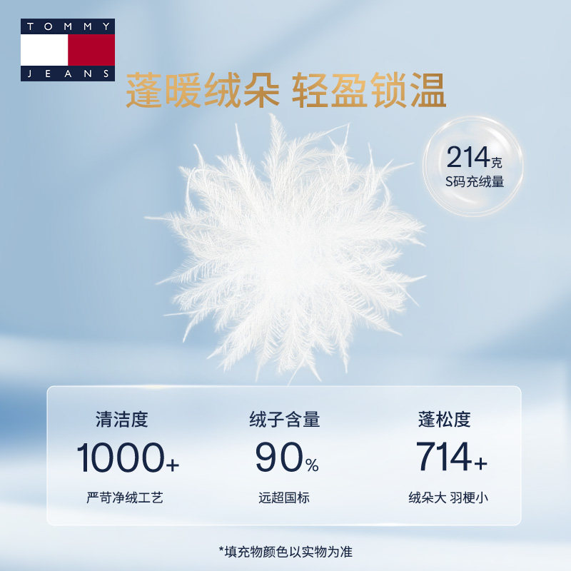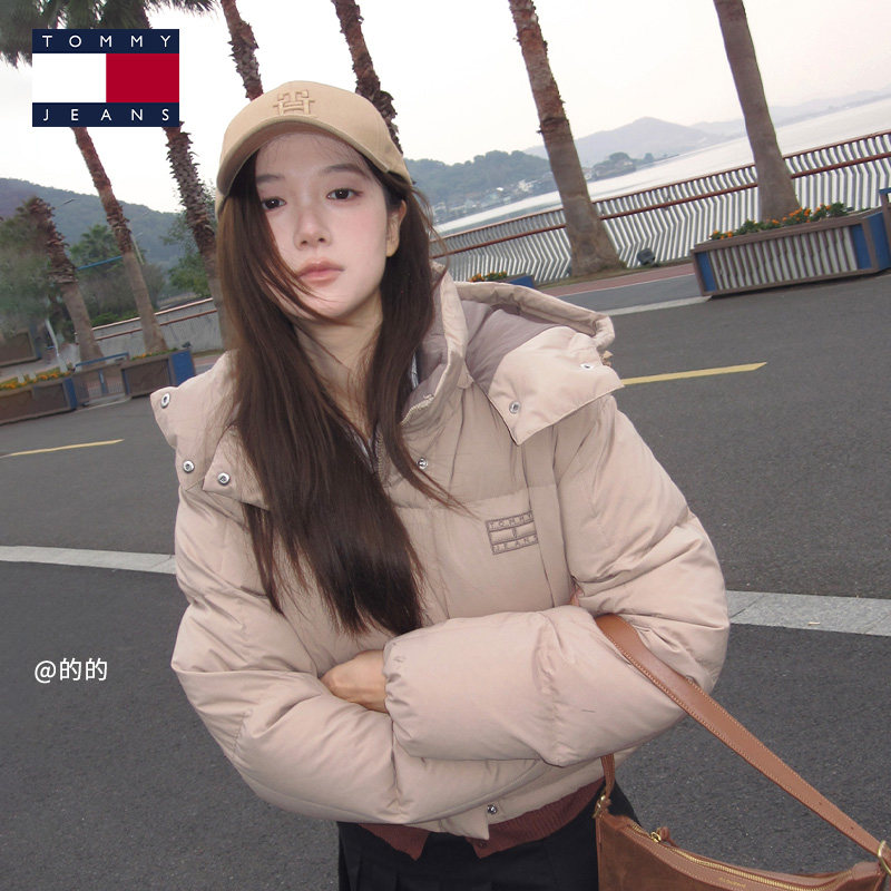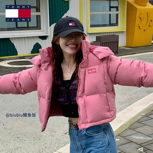 TommyJeans25秋冬女装 英同款 防泼水90绒宽松连帽短羽绒服 张元