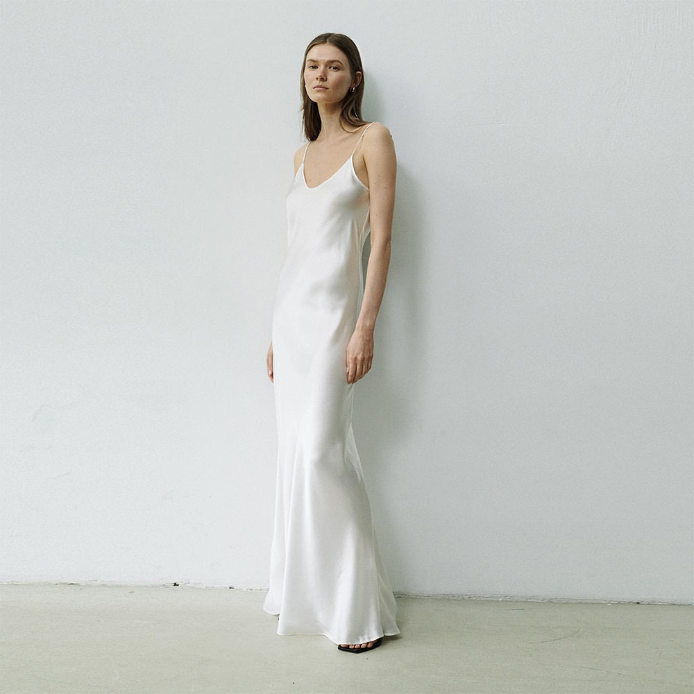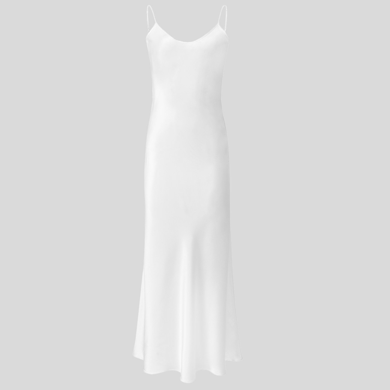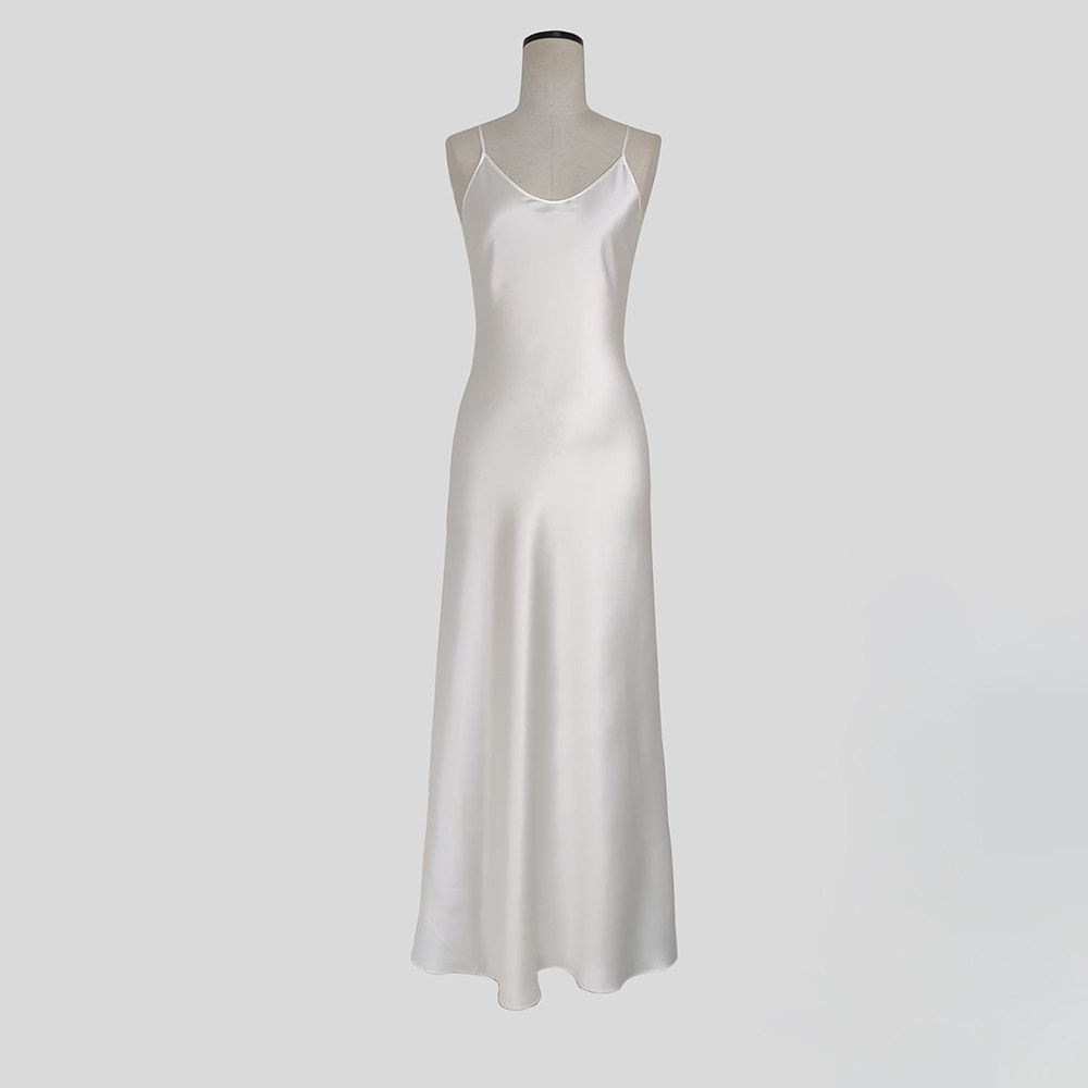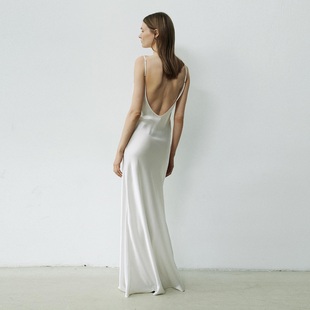 白色30姆米重磅100%桑蚕丝真丝长至脚踝轻婚纱优雅吊带连衣裙