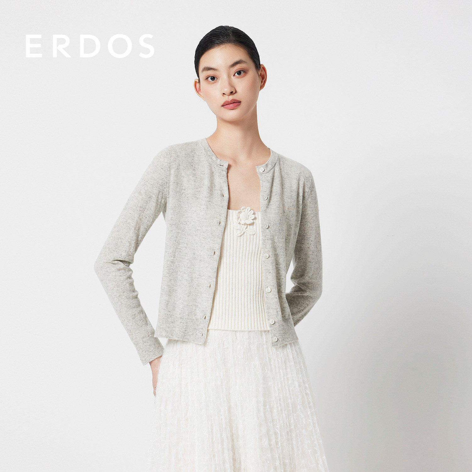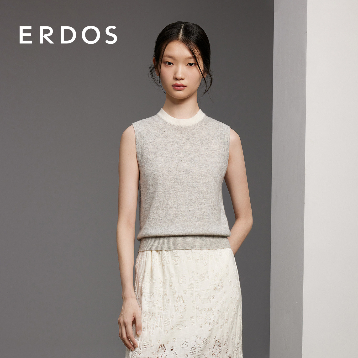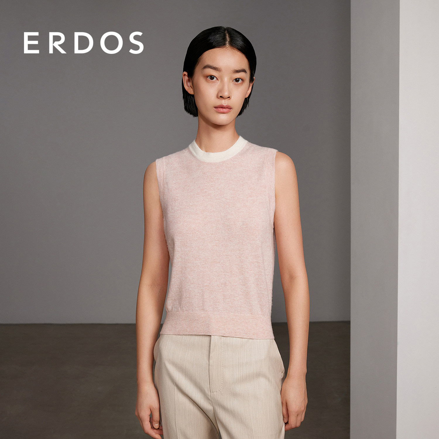 薄款 女学院风针织背心 ERDOS圆领刺绣羊绒开衫 外套 刘雯同款