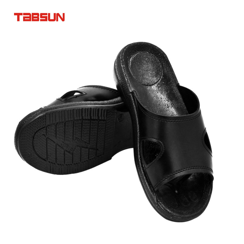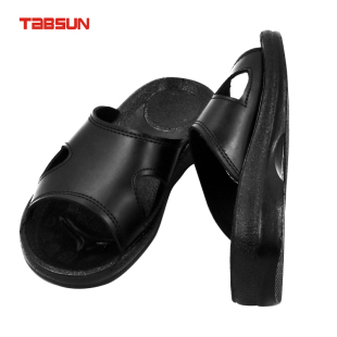 净化车间厂鞋 821加厚底ESD工作拖鞋 防静电PU两孔黑拖鞋 TABSUN
