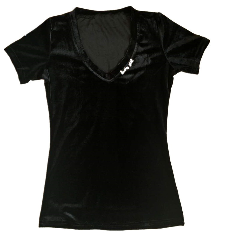 丝绒打底小衫 金丝绒短袖 V领百搭半袖 夏欧洲站大码 t恤女2022新款