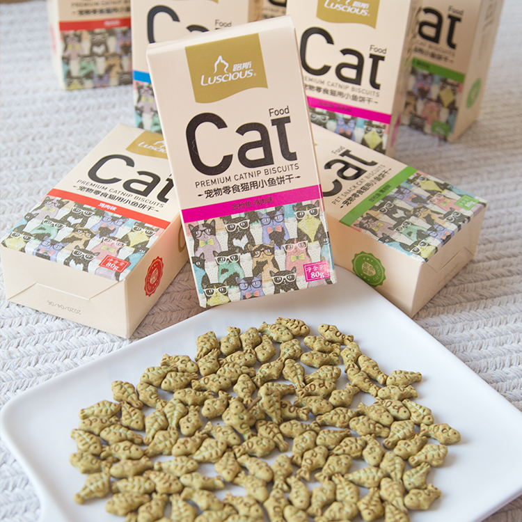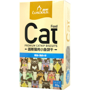 仁可 4盒金枪鱼鸡肉挑嘴磨牙洁齿猫零食 路斯去毛球猫薄荷饼干80g