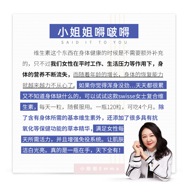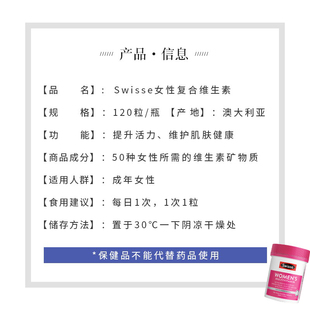 Swisse斯维诗女士复合维生素B族矿物质营养多维维他命100粒 120粒