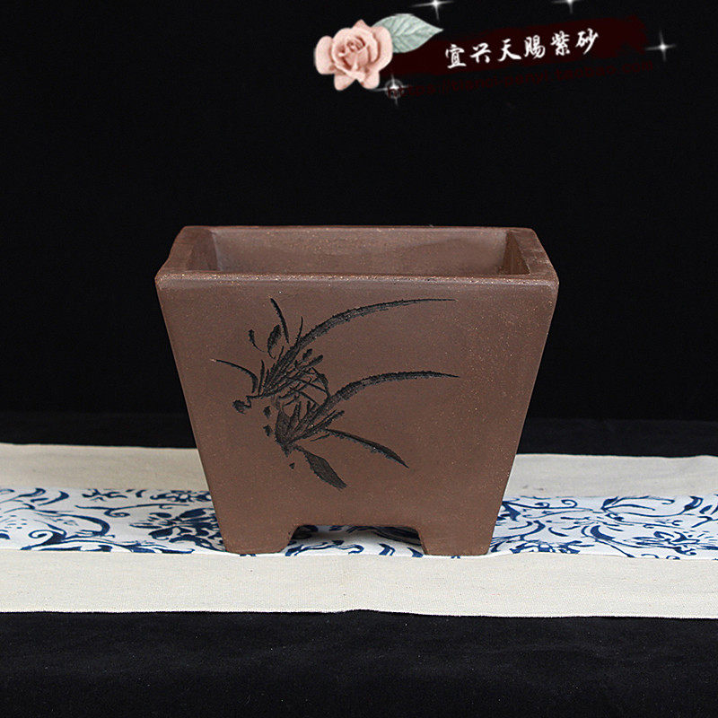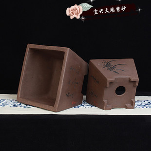 马槽 包邮 原色盆景盆兰花盆 精品 大口方 宜兴紫砂187四方斗