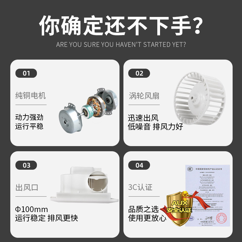 奥克斯排气扇厨房家用抽风机强力卫生间集成吊顶浴室管道式 换气扇