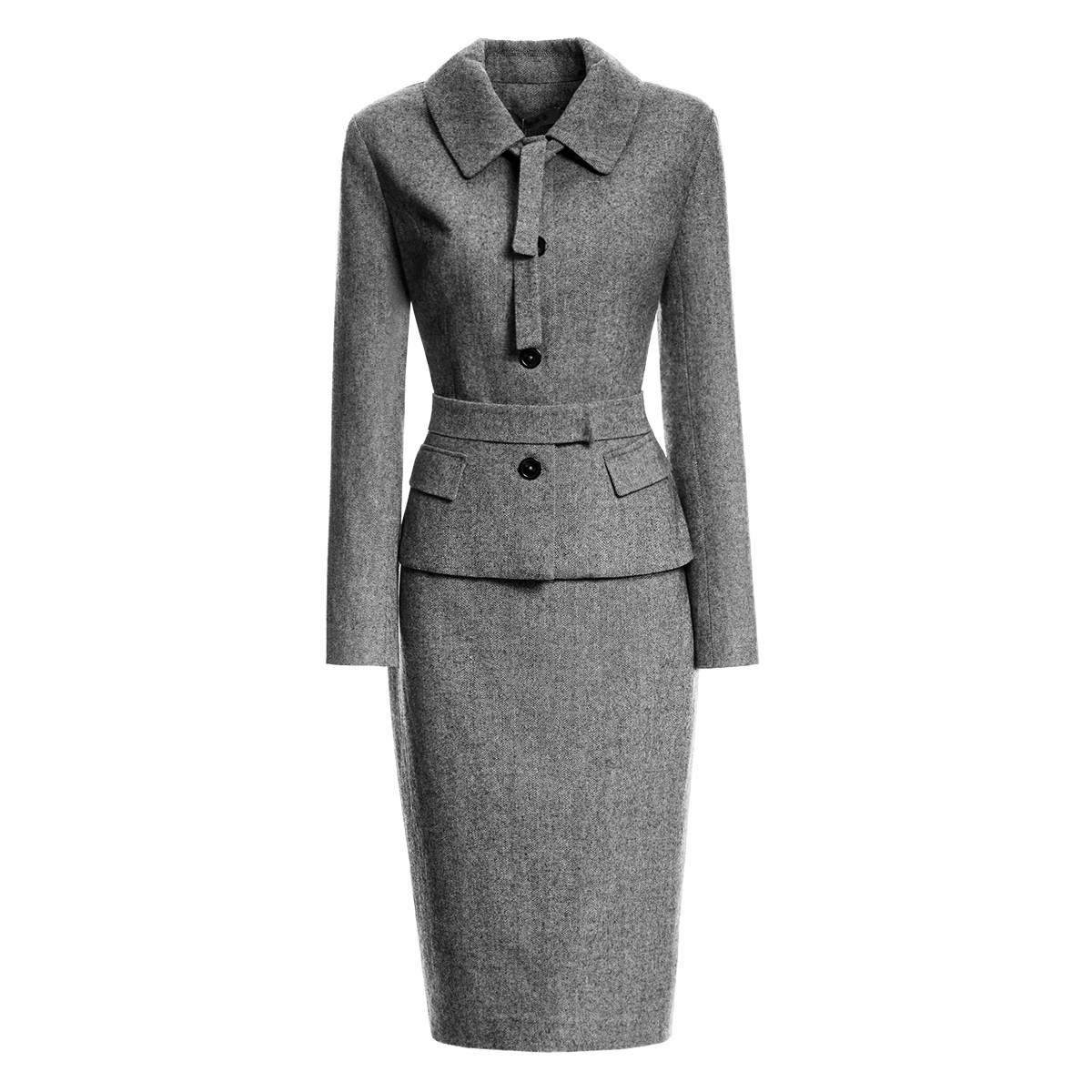 羊毛套装 颈袖 商务正装 春秋时尚 两件套职业收腰女裙 添香女装