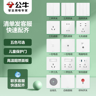 公牛官方旗舰店开关插座空调16A插座五孔10A面板暗装 多孔G12白灰