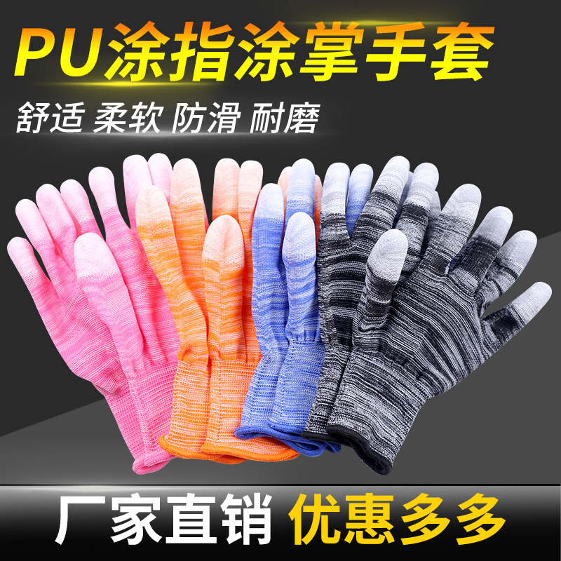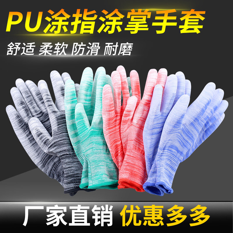 薄款 PU涂指涂掌浸塑涂胶涂层尼龙纱线防静电无尘电子劳保透气手套