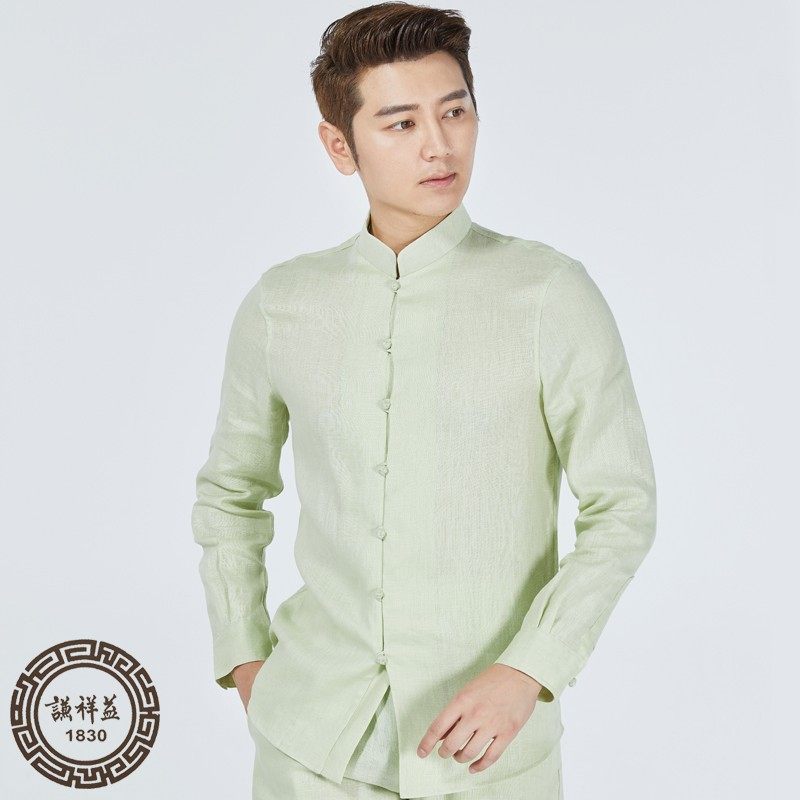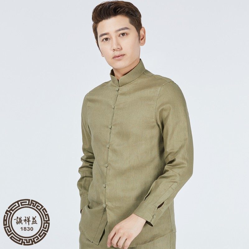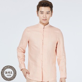 汉服亚麻男装 春夏休闲上衣古风裤 青年长袖 复古修身 子 改良唐装 中式