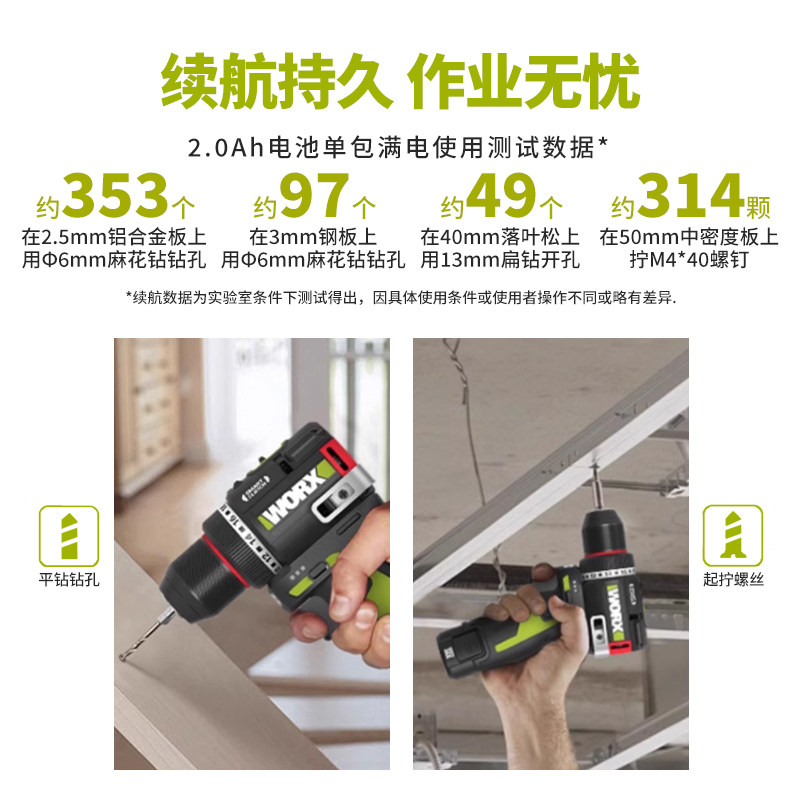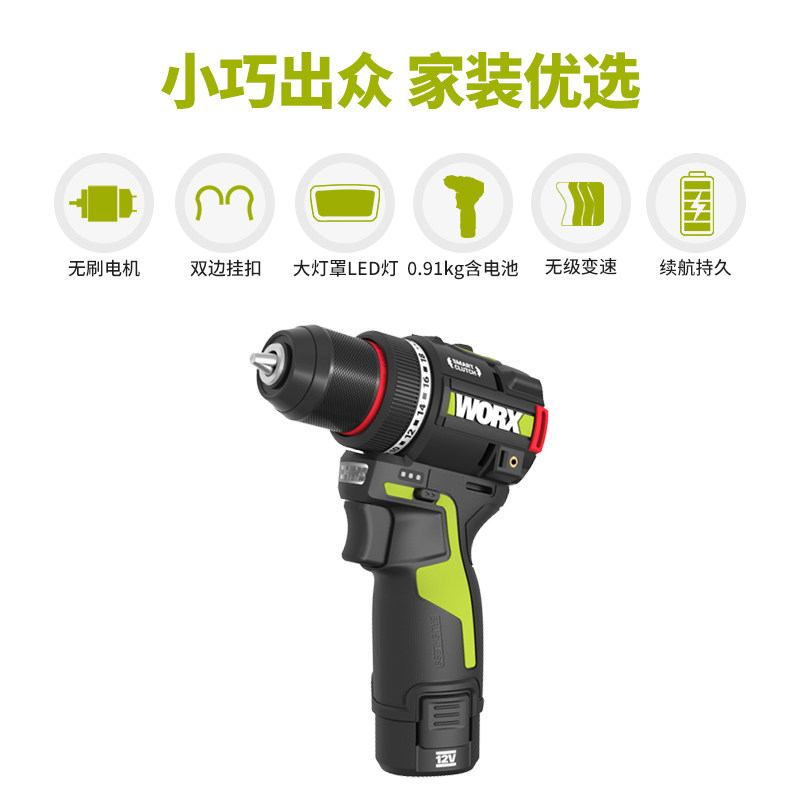 威克士手电钻锂电池WU131X家用小型多功能冲击钻WU135T电动螺丝刀