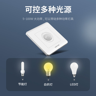 86型声光控感应延时开关面板节能灯220v物业楼道过道声控延迟暗装