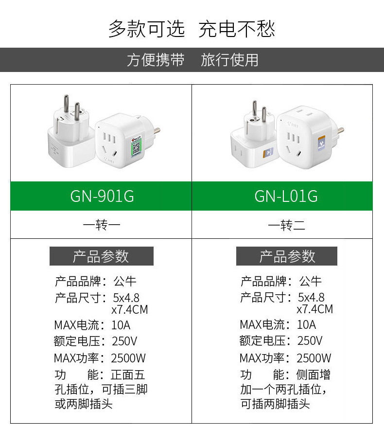 公牛插座转换器多位多功能总控办公家用插板接线板拖线板插排排插