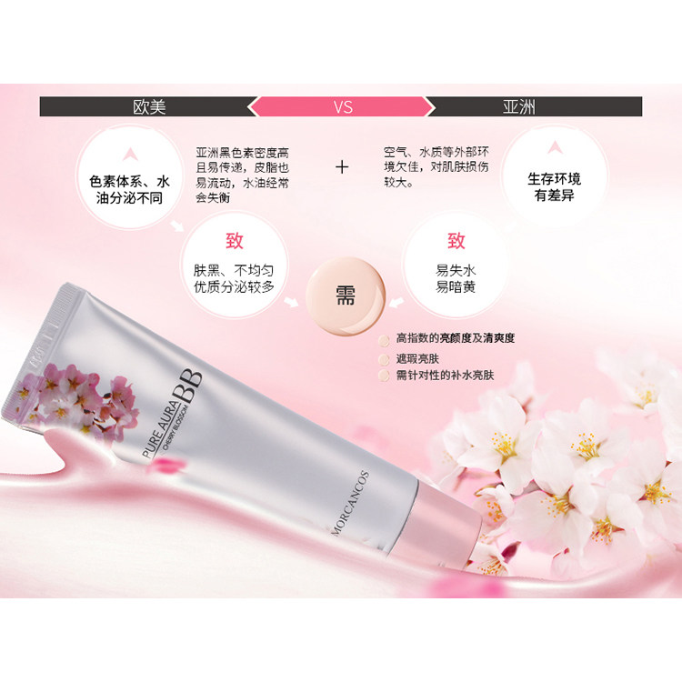 摩肯彩妆韩国进口水润樱花金盏菊BB霜强遮瑕保湿 补水控油官方正品