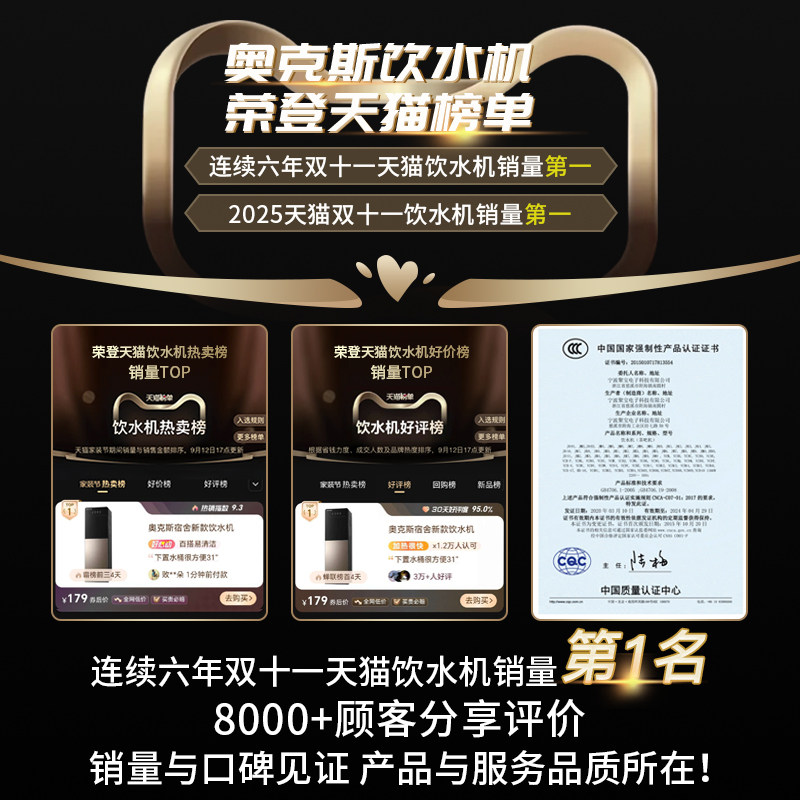 奥克斯316L茶吧机家用智能下置水桶装 水冷热多功能全自动饮水机