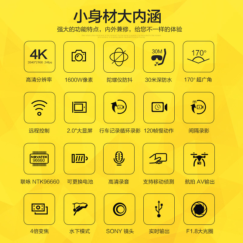 4KSJ9000高清微型WiFi运动摄像潜防水下DV旅游山迷你狗数码 照相机