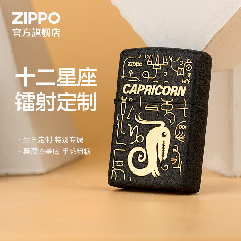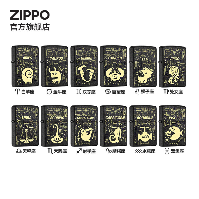 之宝定制刻字十二星座小野兽DIY打火机Zippo官方旗舰店圣诞礼物