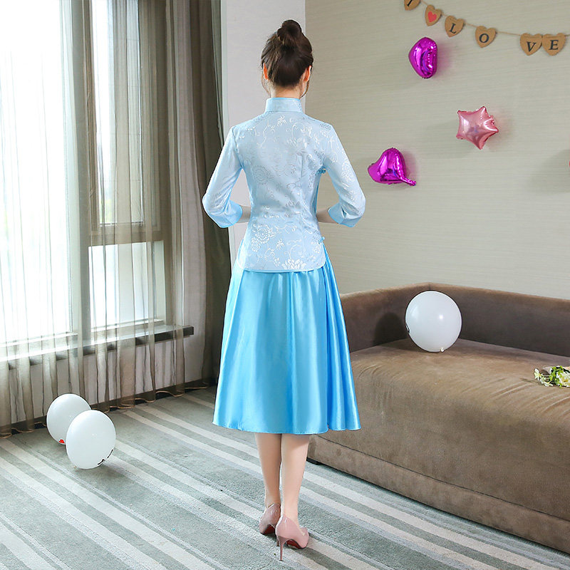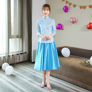 婚礼中国风显瘦姐妹团闺蜜装 伴娘服中长款 中式 春季 礼服裙 2020新款