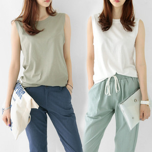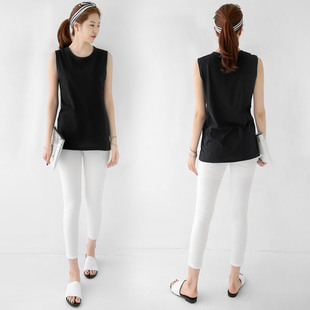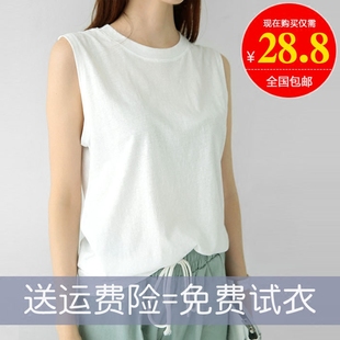 打底衫 纯色百搭外穿无袖 新款 白色罗纹棉直筒吊带背心女内搭春夏季