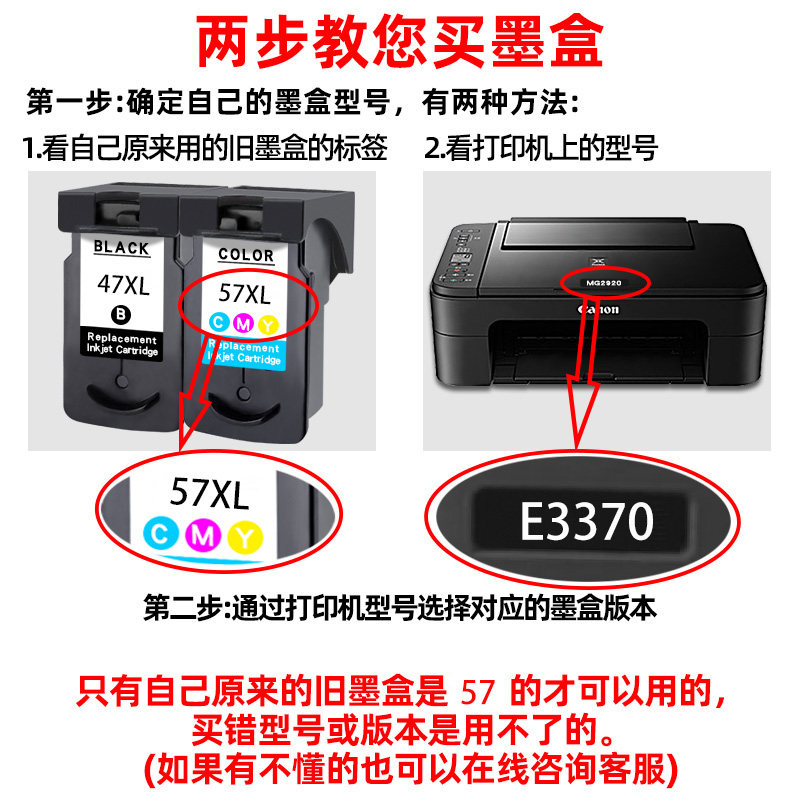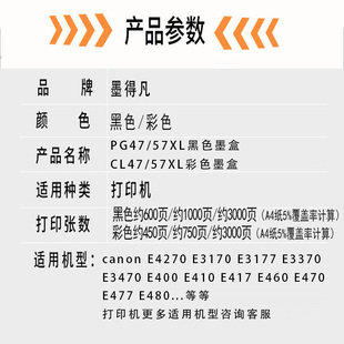 适用pg47墨盒cl57彩佳能E3370E3470E400E417E477E3170E3177打印机