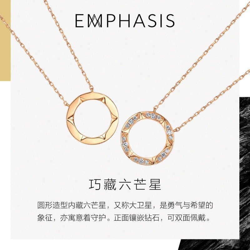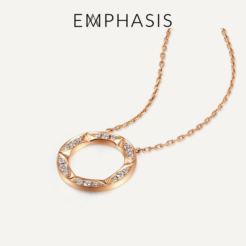 EMPHASIS艾斐诗「恒」系列18K金六芒星钻石圆环项链女91986N