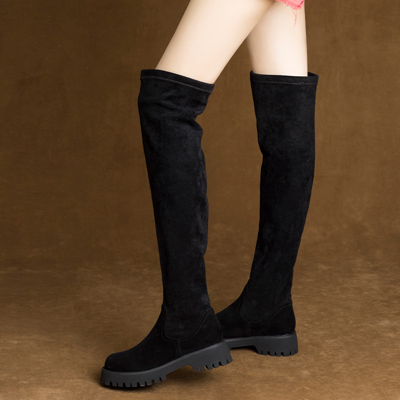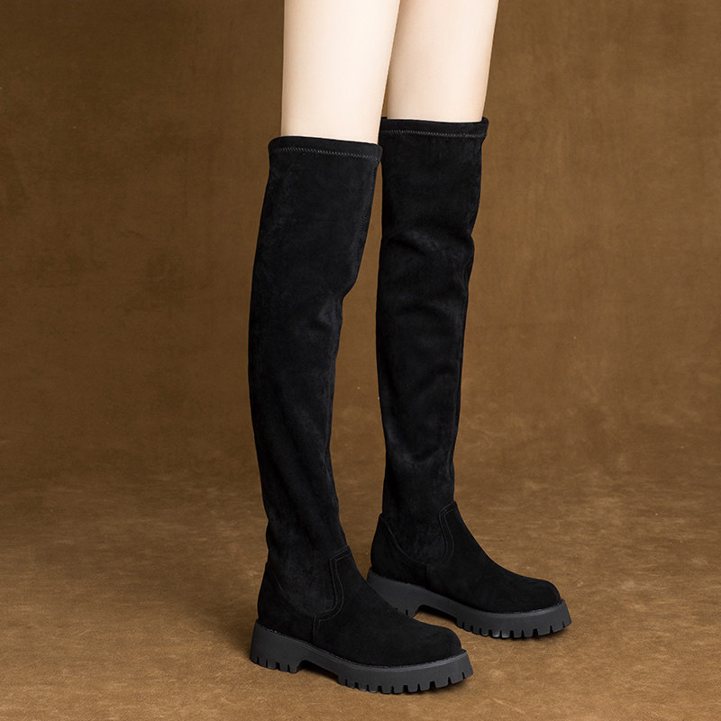 2025新款 秋冬厚底瘦瘦靴平底加绒过膝长筒靴弹力瘦腿高筒靴女靴子