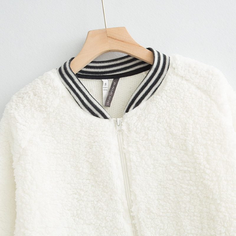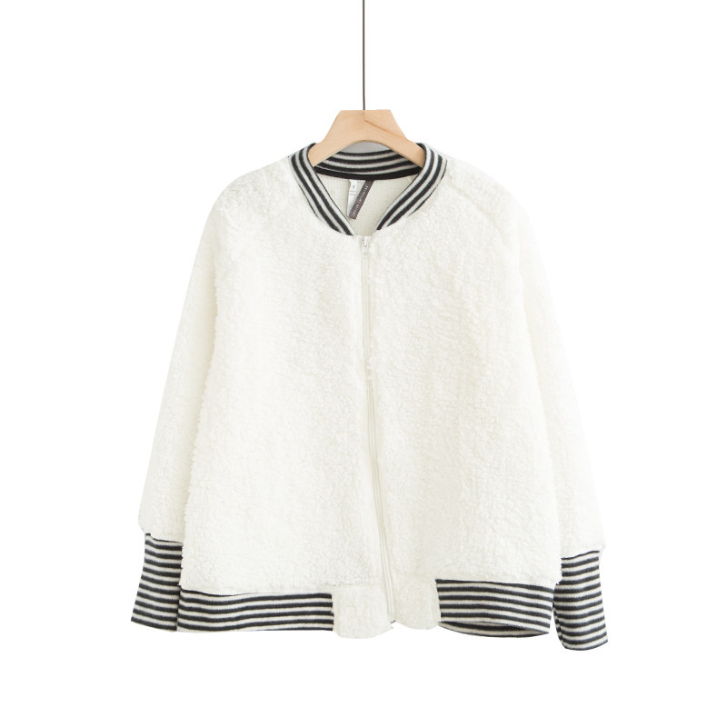 新款 2026冬季 宽松百搭加绒加厚仿羊羔毛两件套条纹外套 女装 大码