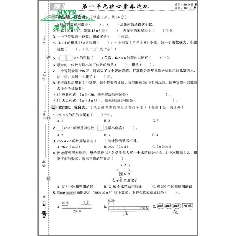 小学数学3年级下册典中点北京师大版 荣德基 三年级 北师大版 北师版 下 典中点 数学 教材同步练习册 2026春 BS版 综合应用创新题