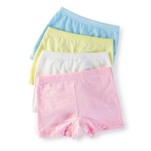 打底短裤 全棉吸汗女童大童四角裤 纯棉白色花边平脚裤 儿童内裤