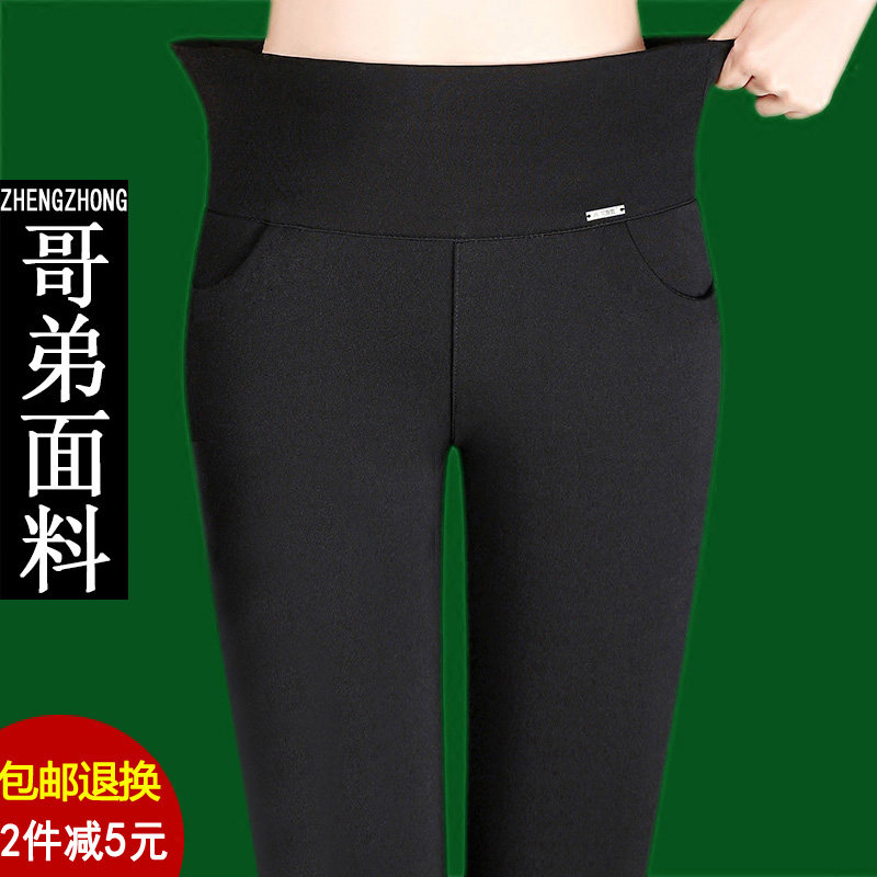 长裤 春夏妈妈显瘦九分裤 外穿高腰打底紧身薄款 女铅笔弹力裤 子 大码