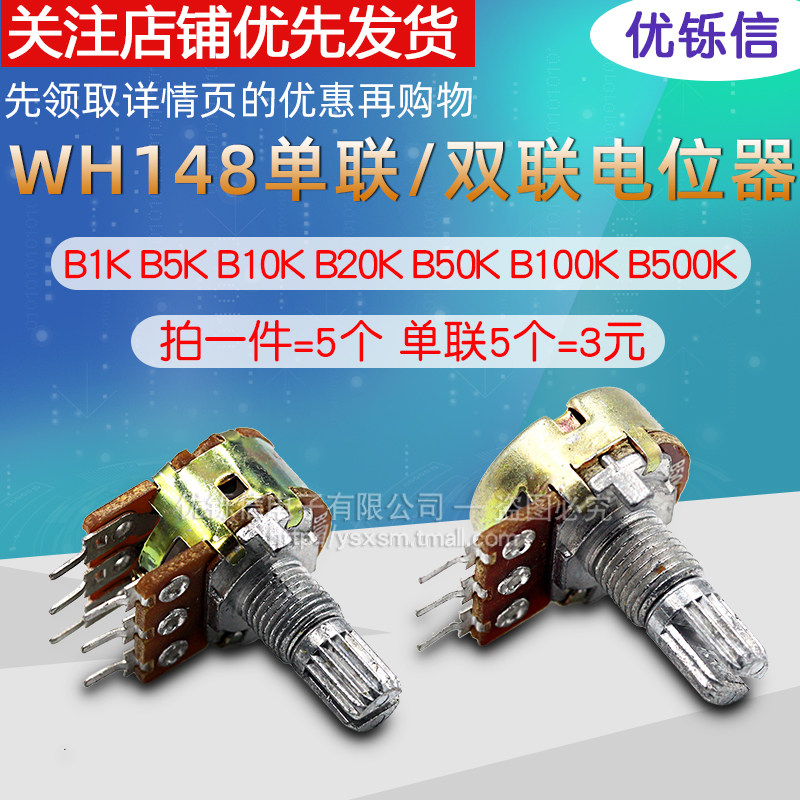 500K柄15 单联双联电位器WH148可调B1K 100K 50K 20MM 2K5K10K20K
