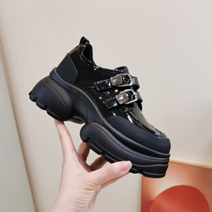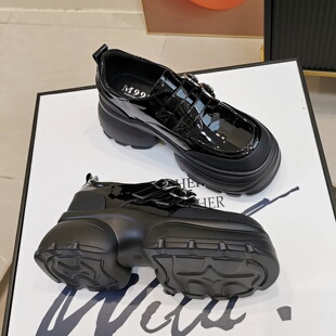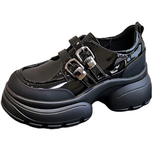 漆皮魔术贴小皮鞋 英伦风厚底6CM乐福鞋 百搭JK单鞋 新款 女2025秋季