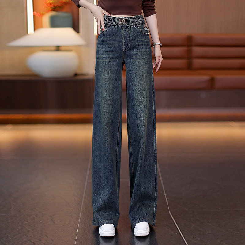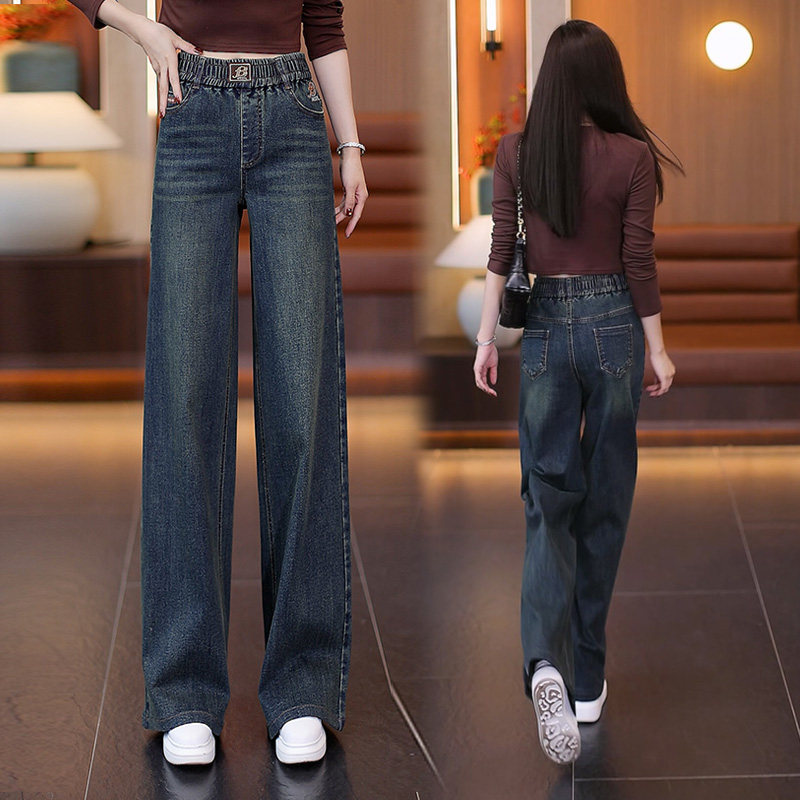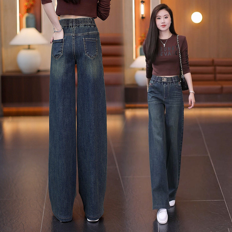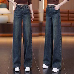 阔腿牛仔裤 百搭休闲裤 子女秋冬季 高腰显瘦宽松直筒裤 新款 复古窄版