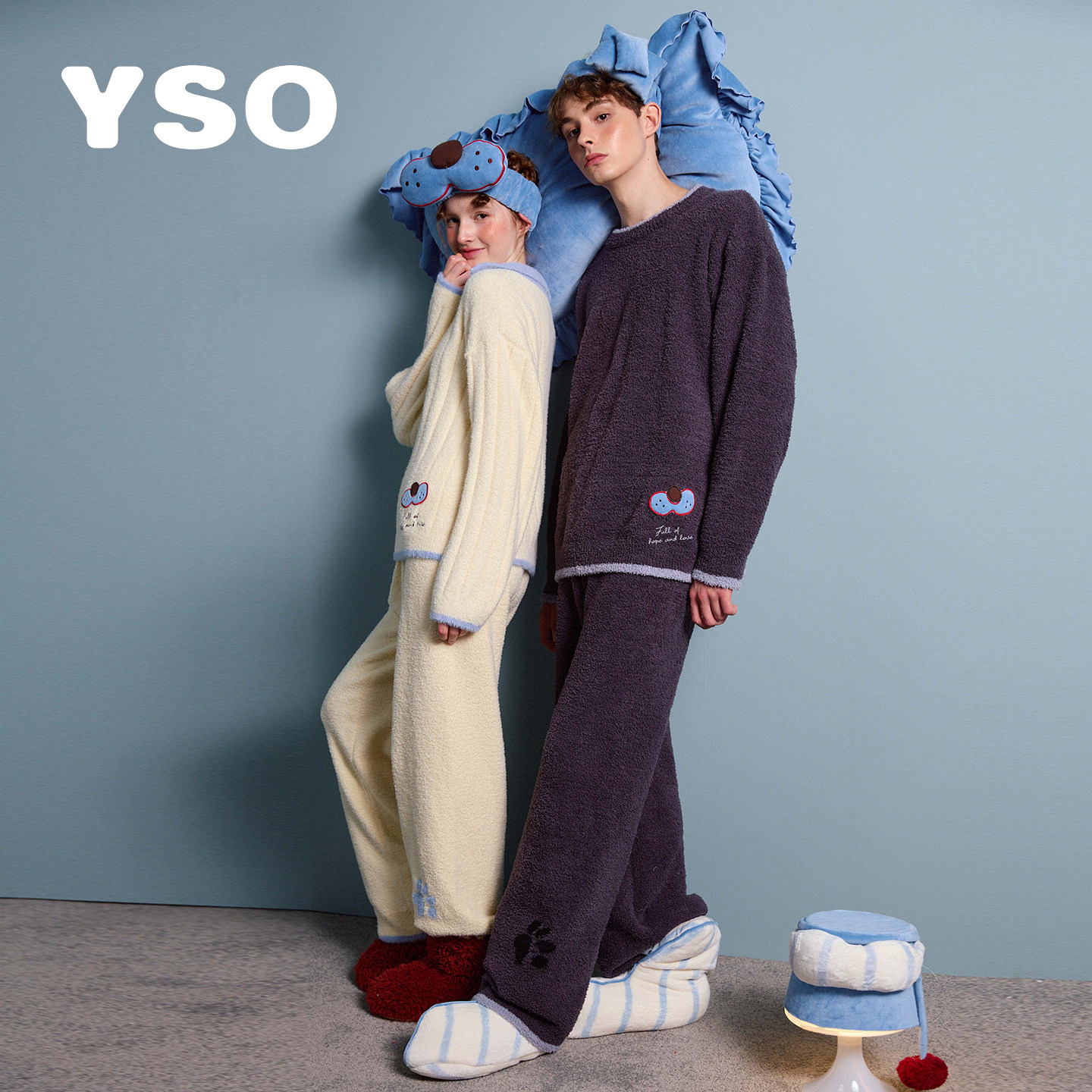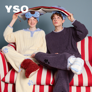 女保暖情侣睡衣D 睡衣冬秋冬加厚半边绒家居服套装 yso 酷猫系列
