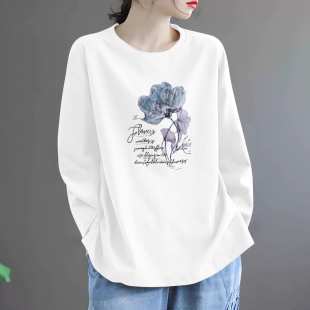 外贸出口清仓100%纯棉复古宽松慵懒长袖 T恤女打底休闲气质上衣潮