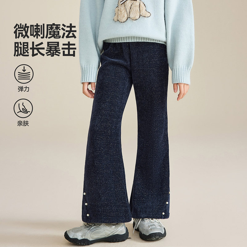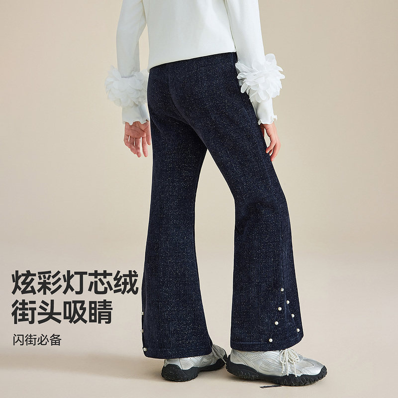 子 简约休闲显瘦拖地裤 橘子树在哪儿复古高腰加绒微喇牛仔裤 女冬季