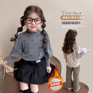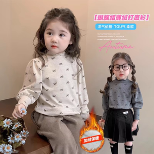 打底衫 式 2025新款 女宝宝蝴蝶结款 加绒保暖洋气潮 春秋季 女童泡泡袖