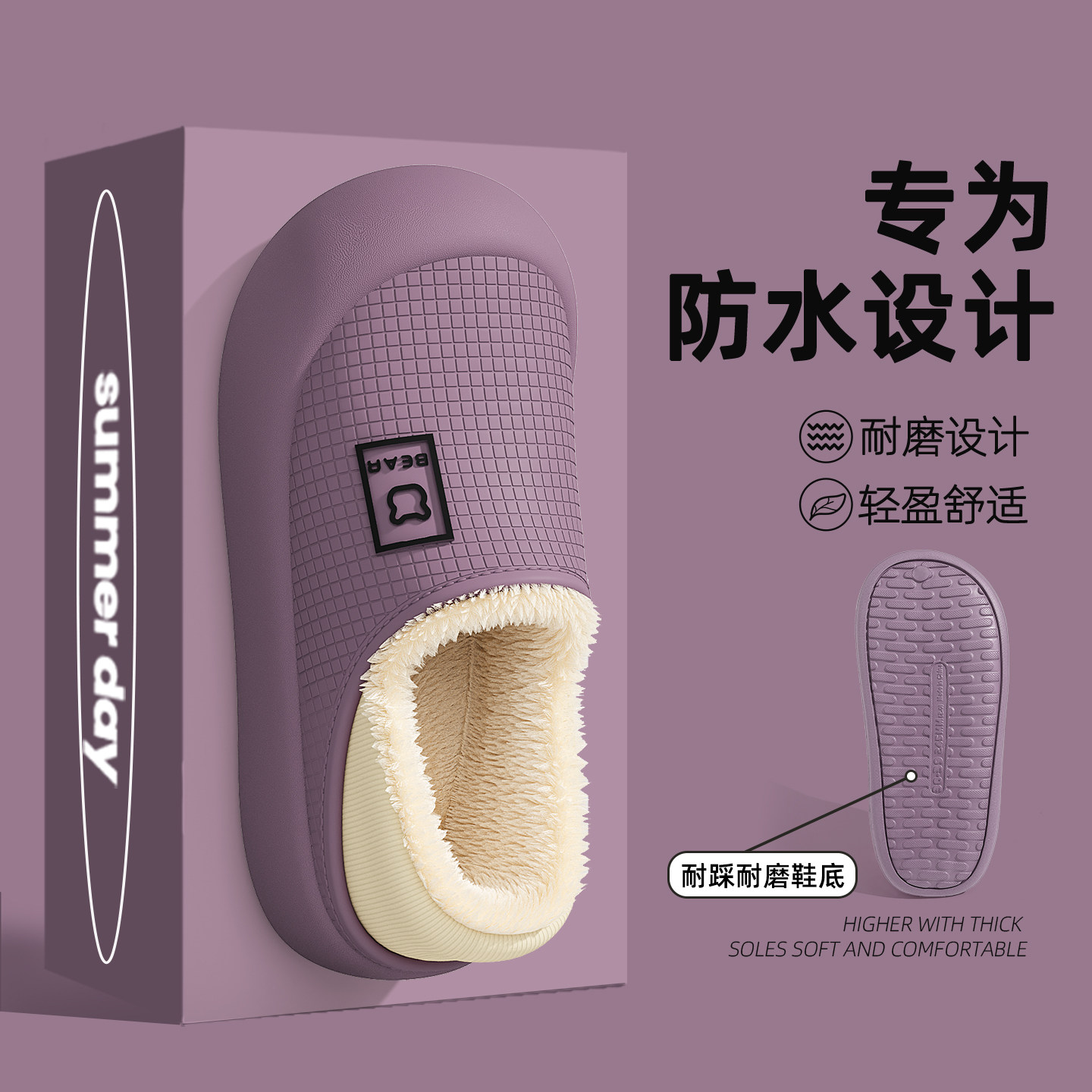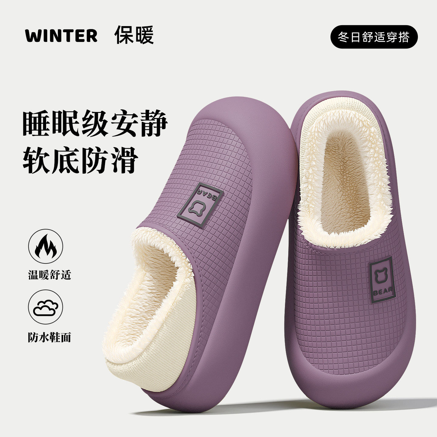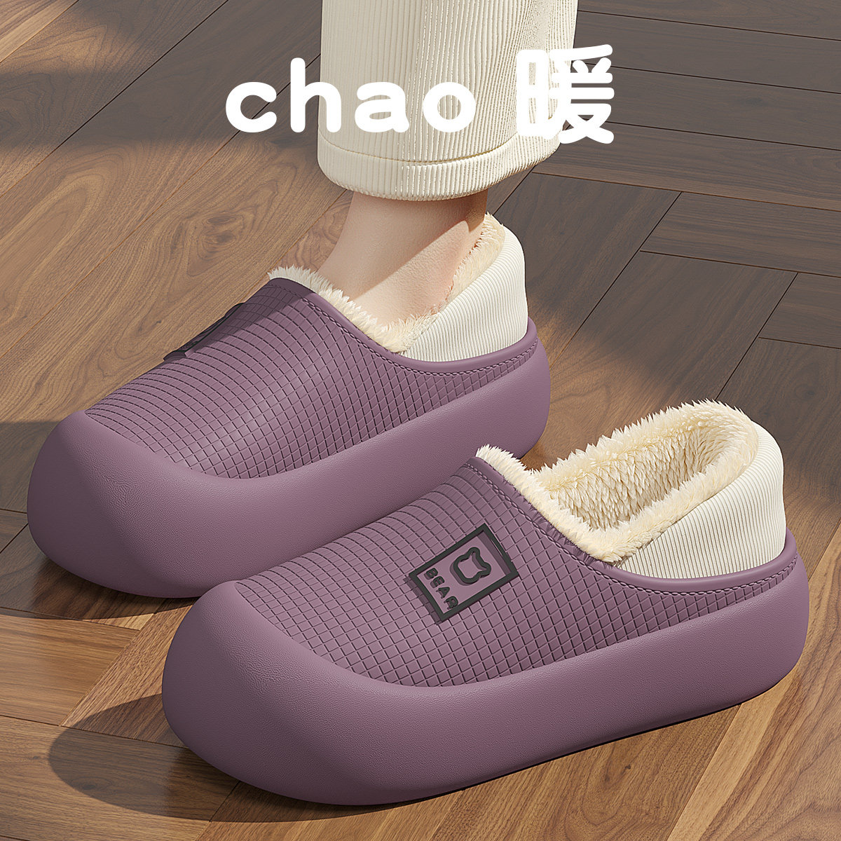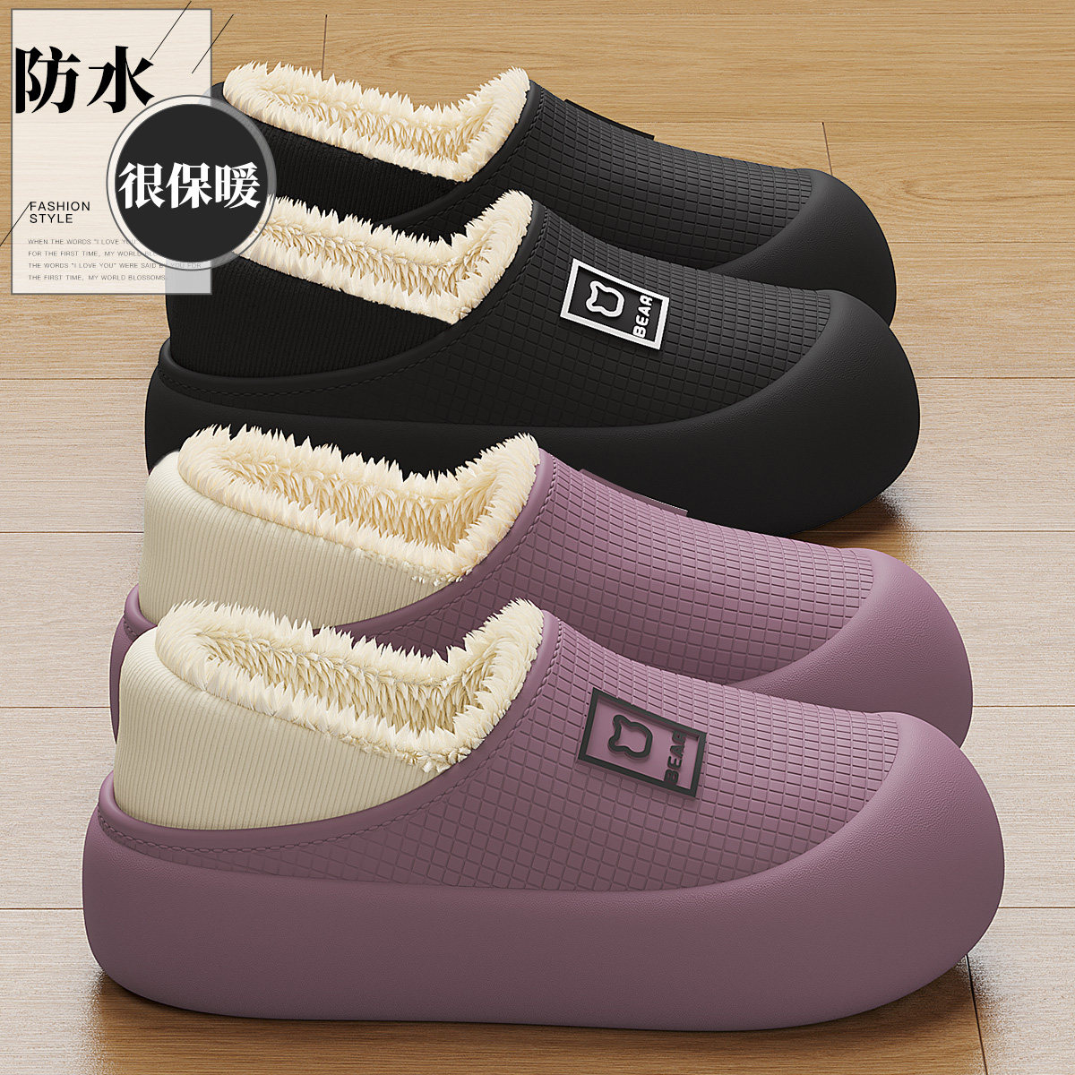 室内家居防滑毛绒保暖包跟月子棉鞋 2026新款 女士秋冬季 防水棉拖鞋