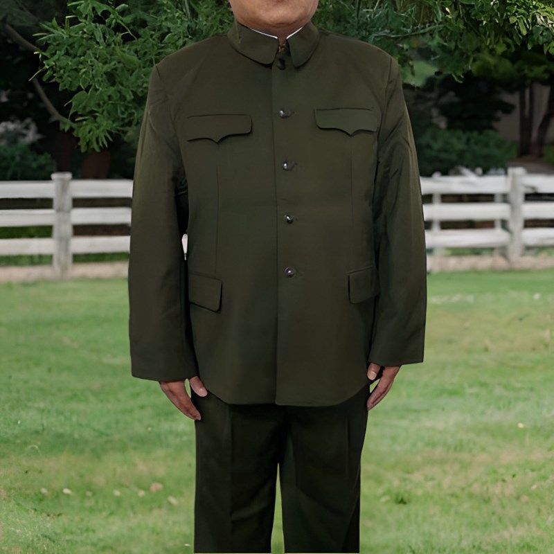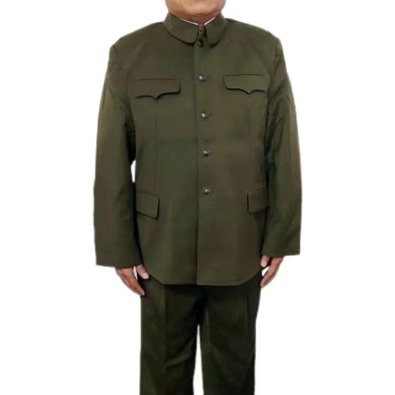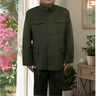 呢套装 中老年爸爸带肩眼肩袢中山服毛料55马裤 呢中山装 90年代马裤