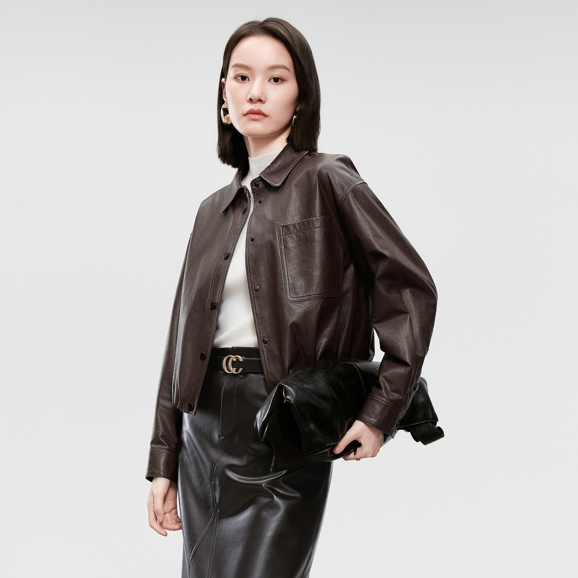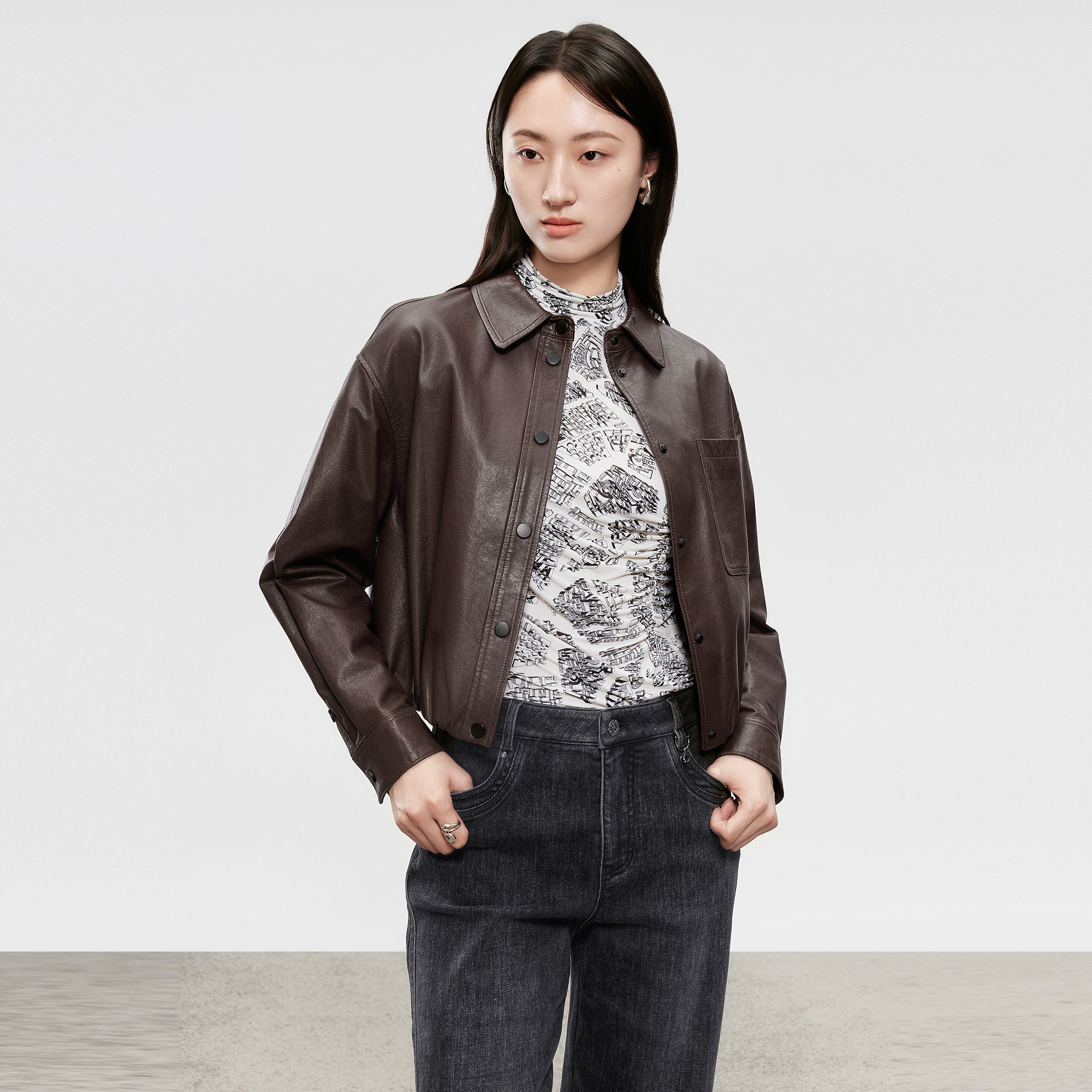 春季 CADIDL卡迪黛尔商场同款 穿搭柔韧皮衣短外套女 小羊皮