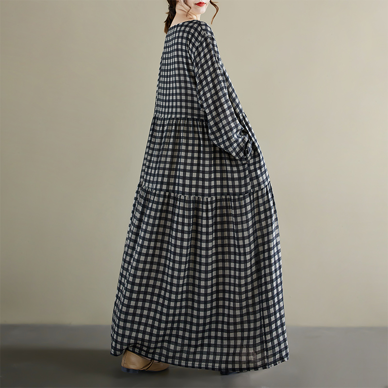 安妮不火 学院连衣裙 显白焦糖栗子色格纹拼接系带长裙女微胖大码