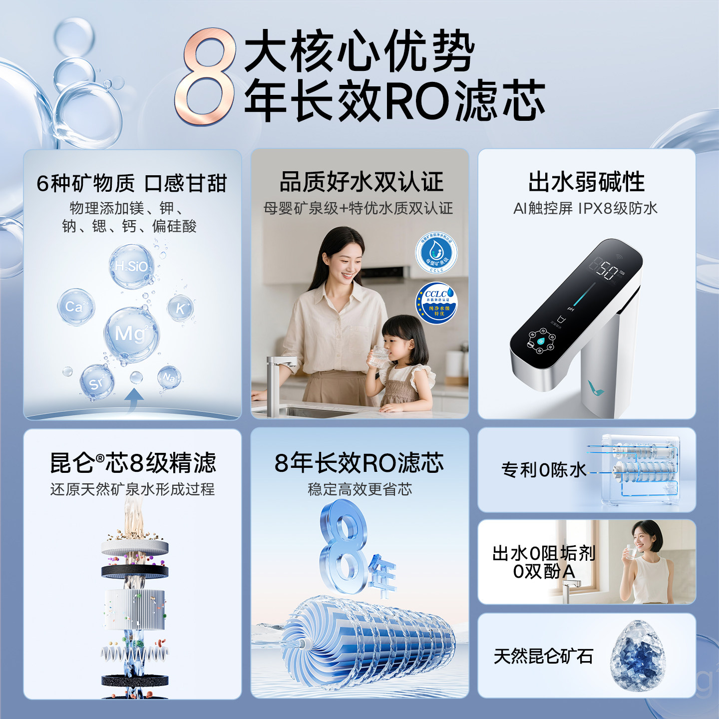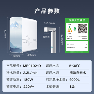 云米白富镁净水器昆仑4Pro矿泉弱碱水8年长效RO反渗透1200G厨下式