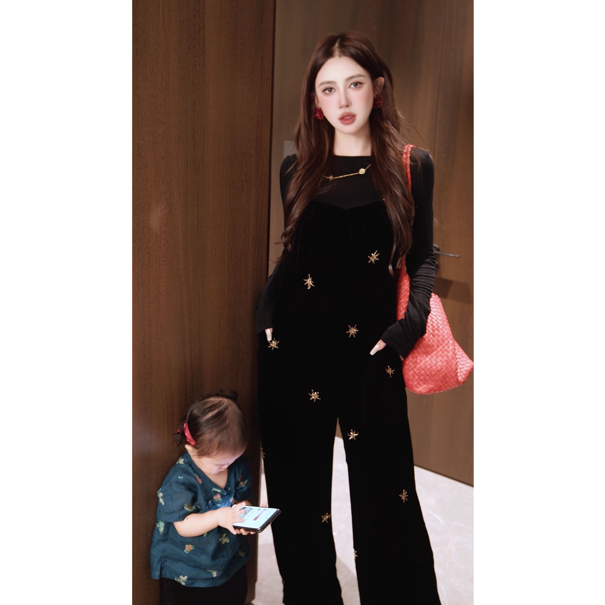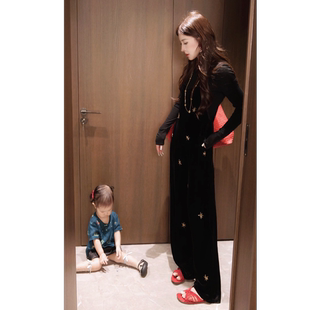 黑色时尚 显瘦休闲裤 KZ92 设计感轻奢钉珠背带裤 Gyantong郭彦彤