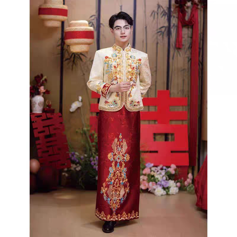大码 男士 新郎结婚婚服敬酒礼服高级龙凤褂唐装 中式 秀禾服2025新款