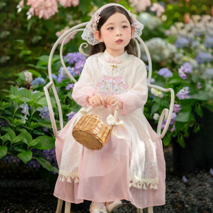 连衣裙2026春新款 汉服女童儿童新中式 小女孩国风长袖 子套装 马甲裤