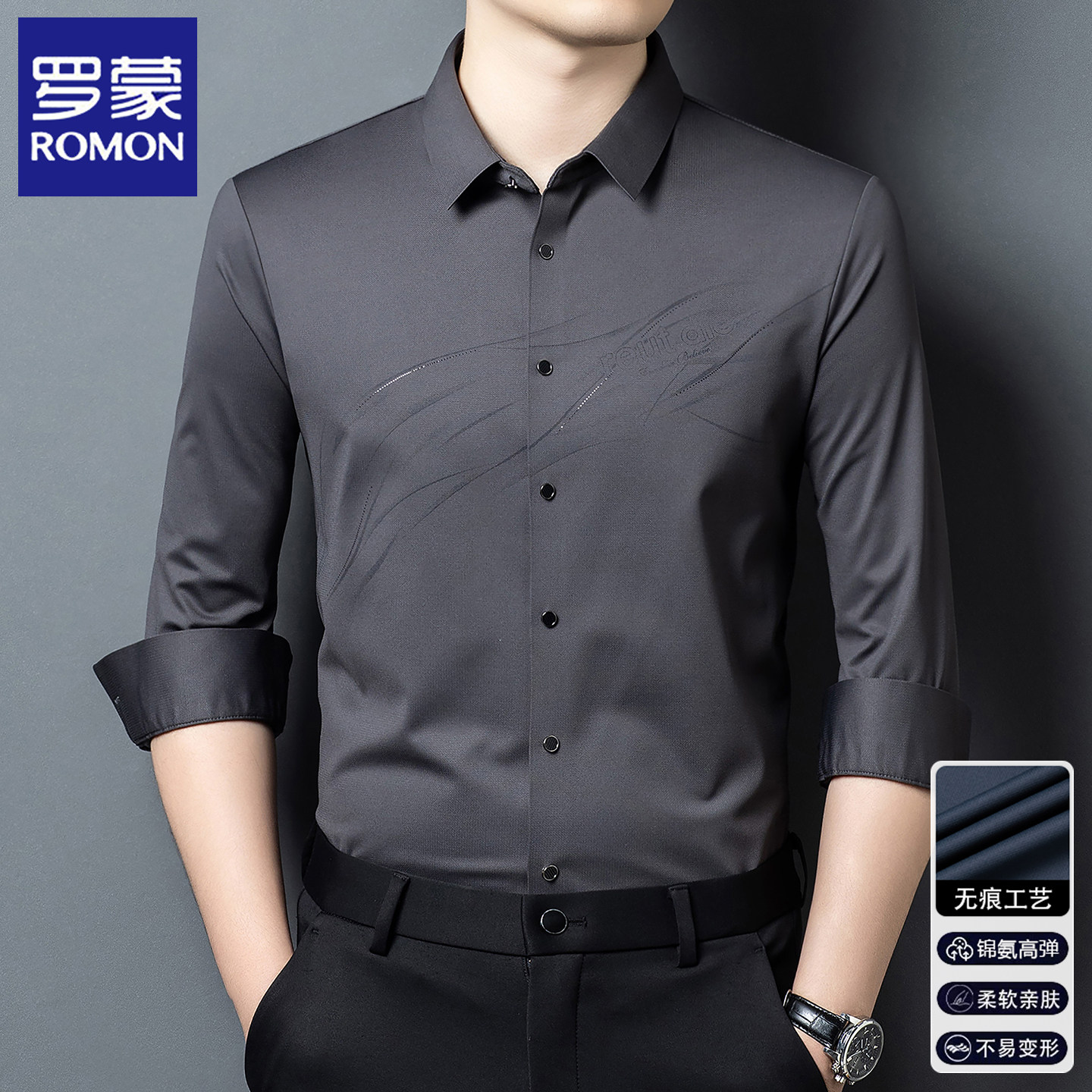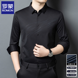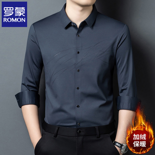 商务休闲高弹免烫男装 罗蒙男士 2025秋冬季 长袖 加绒保暖衬衣服 衬衫